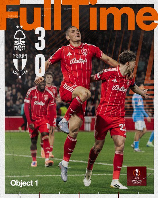 北京时间11月28日04:00,欧联杯联赛阶段第5轮,诺丁汉森林主场迎战马尔默。上半场,耶茨率先为球队打破僵局。随后卡利穆恩多接队友配合后攻入一球。半场结束,诺丁汉森林2-0马尔默。下半场,米伦科维奇为球队锁定胜局。全场比赛结束,最终比分为诺丁汉森林3-0马尔默。