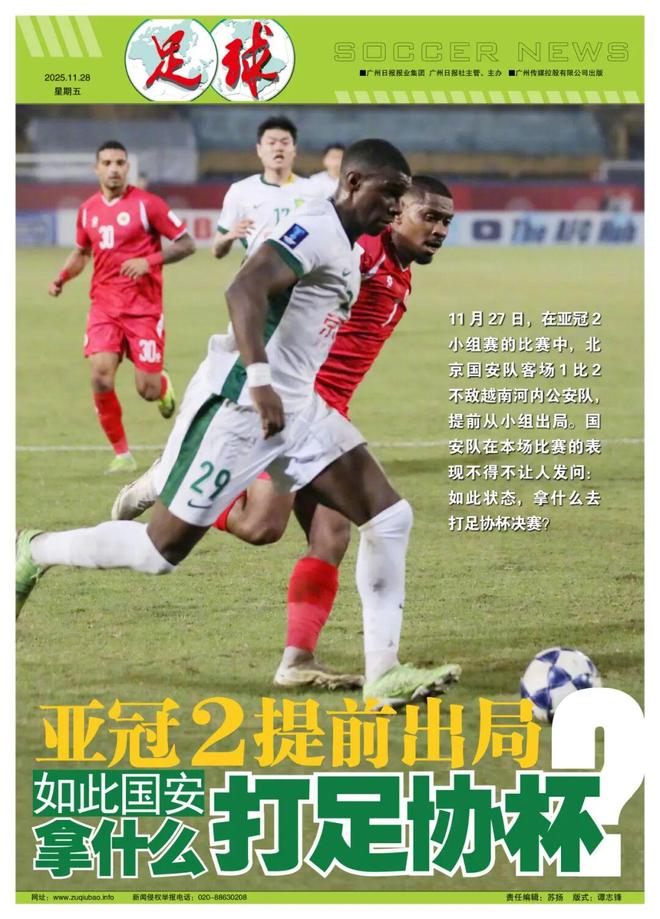 特约撰稿/宋词11月27日,在亚冠2小组赛的比赛中,北京国安客场1比2不敌越南河内公安,提前从小组出局。本场比赛,国安队在上半时先进一球的情况下,下半时一直被对手压制,在球队错过几次反击的得分良机后,终于受到了惩罚,被对手在76分钟、90分钟的时候连入两球,最终惨遭逆转。面对实力不是很强的越南河内公安,国安队在本场比赛的表现不得不让人发问:如此状态,拿什么去打足协杯决赛?