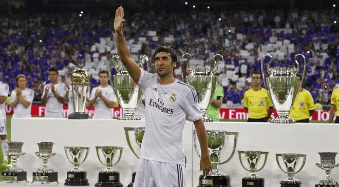 但劳尔在皇马拥有辉煌战绩。他的荣誉陈列柜中摆放着皇家马德里的第七、八、九座欧冠冠军奖杯,以及六座西甲冠军奖杯。此外还有一座欧洲超级杯、四座西班牙超级杯和两座洲际杯。或许最令人印象深刻的是他至今仍保持的皇马队史纪录:741次出场,攻入323粒进球。