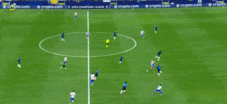 下半场刚刚开打,国际米兰就差点扳平比分,巴雷拉接到队友长传球后禁区内大力抽射,可惜运气不佳,皮球重重砸在横梁上被弹出,错失了扳平比分的绝佳机会,第50分钟劳塔罗送出一脚穿透性极强的传球,但迪马尔科的打门被马竞门将奋勇挡出。